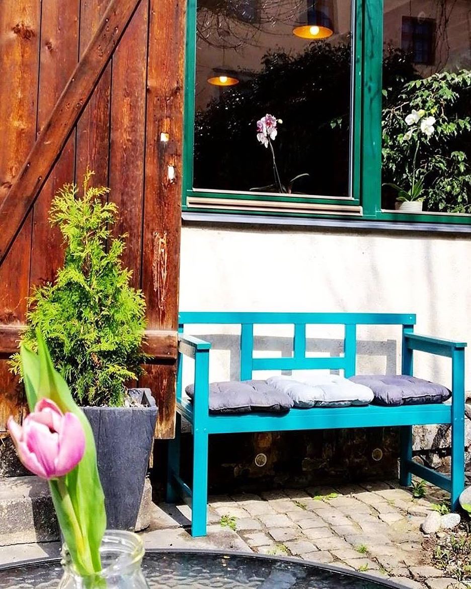 V létě skrývá zahrádku plnou zeleně v klidu městského vnitrobloku. Dezerty a dorty pečou i na míru pro soukromé akce.