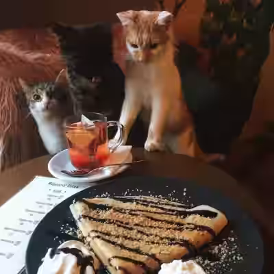 V nabídce slané a sladké občerstvení domácí výroby, především palačinky a vafle, obložené toasty. Vybírat můžete i z několika druhů zákusků a dortů.