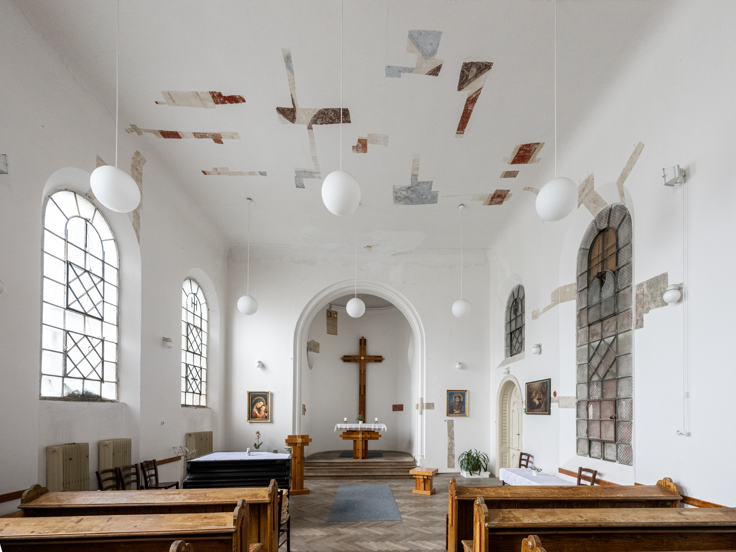 Na sanktusníku kaple jsou výrazné prvky takzvané beuronské umělecké školy. Malby v kapli, v současné době skryté pod bílou přemalbou jsou vyvedeny taktéž ve slohu beuronské umělecké školy. K tomuto slohu odkazují i zdobení dlaždic na podestách schodišť, kování zábradlí, profilování dveřních výplní. Autorem tohoto konceptu výzdoby byl A. Österrecheir. Dlouhá léta po odsvěcení sloužila kaple k potřebám internátu střední zdravotnické školy.
