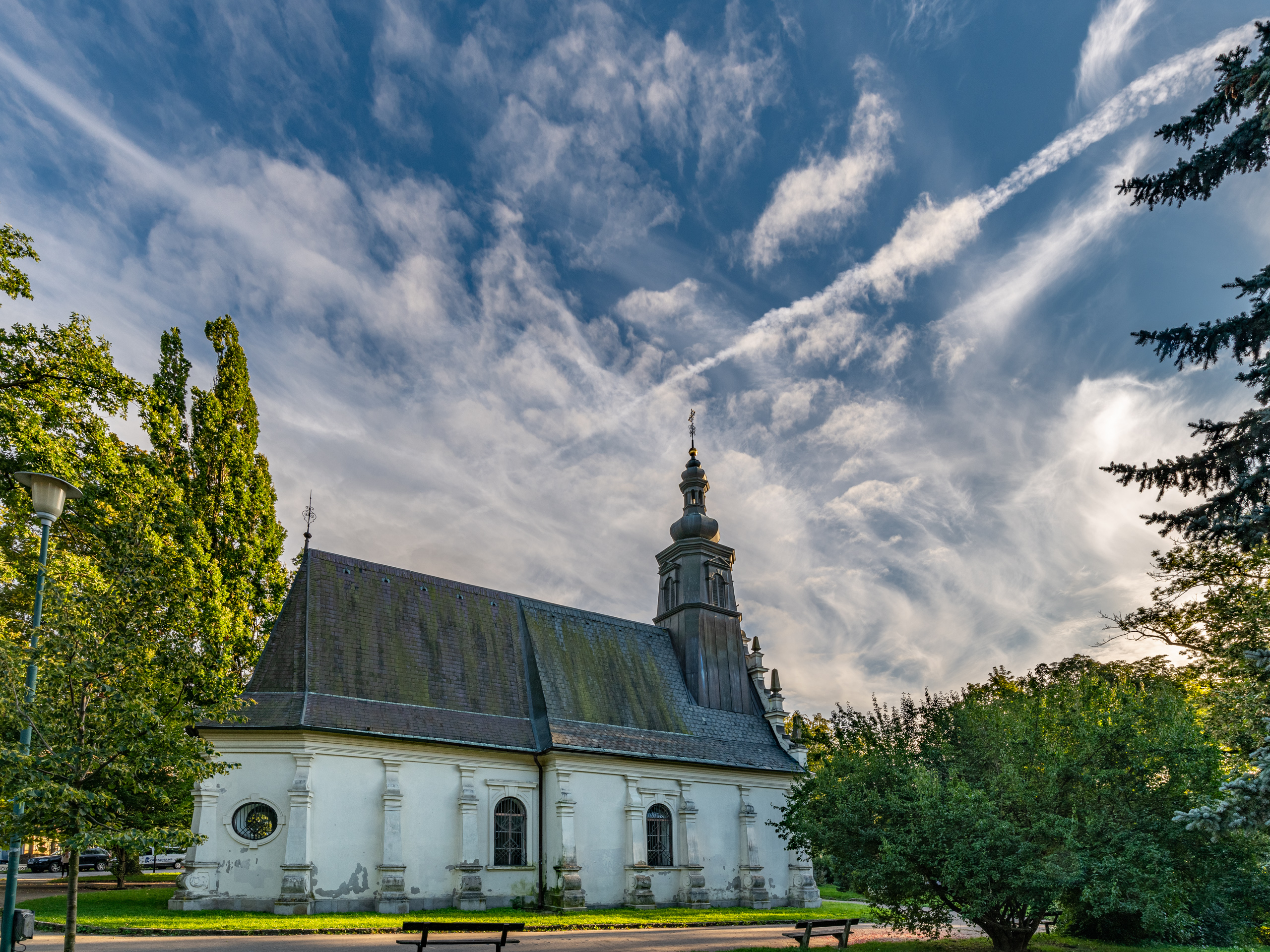 Kostelík vyrostl na nově založeném hřbitově roku 1572. Za švédské okupace byl téměř zničen a znovu postaven byl v manýristickém duchu. Hřbitov kolem byl později zrušen a prostor se stal v roce 1891 parkem. Dnes má kostelík barokní úpravu a v interiéru skrývá 12 náhrobních kamenů ze zrušeného hřbitova.