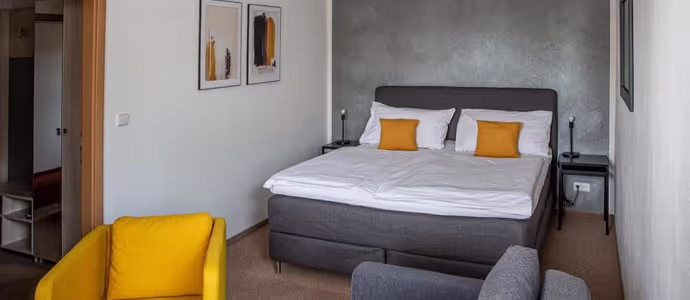 K dispozici je 14 pokojů o kapacitě 35 lůžek a 11 přistýlek v horním podlaží. Mezonetových pokojů je 11. Výběr pokojů od 1-4 lůžek. Každý pokoj má své sociální zařízení se sprchovým koutem a WC,TV. V celém objektu připojení WIFI zdarma. Pokoj pro invalidní nebo špatně pohyblivé osoby je umístěn v přízemí budovy a je přístupný ze dvora. Zákaz kouření po areálu, povoleno pouze na vyhraněných místech.