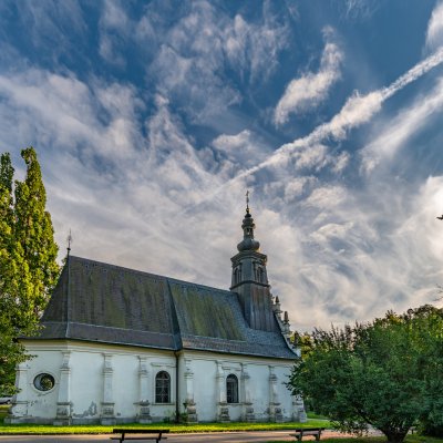 Kostelík vyrostl na nově založeném hřbitově roku 1572. Za švédské okupace byl téměř zničen a znovu postaven byl v manýristickém duchu. Hřbitov kolem byl později zrušen a prostor se stal v roce 1891 parkem. Dnes má kostelík barokní úpravu a v interiéru skrývá 12 náhrobních kamenů ze zrušeného hřbitova.