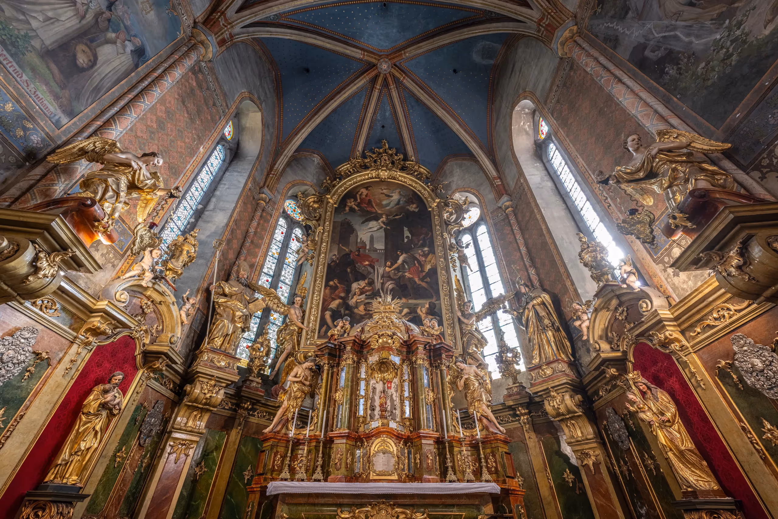 V prostoru mezi kaplí Sladovnickou a kaplí sv. Voršily je umístěna nádherná renesanční křtitelnice, zdobená tepaným plátkovým zlatem, byla zhotovena norimberským zlatníkem Hansem Hirzem v roce 1599, na objednávku jihlavského konšela, sladovníka a erbovního měšťana Jacoba Seidenmelczera ze Seidenbergu. Hlavní oltář zdobí majestátní 7,5 m vysoký obraz Stětí svatého Jakuba Většího z roku 1735, od jihlavského rodáka a dvorního malíře císařovny Marie Terezie Johanna Nepomuka Steinera.