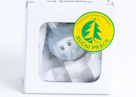 Skleněná vánoční ozdoba ze Dvora Králové nad Labem s motivem ježka