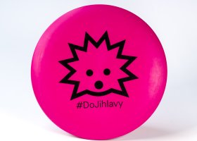 Létající talíř #DoJihlavy v růžovém a bílém provedení