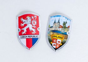Kovový odznak s motivem ježka a znaku města Jihlavy