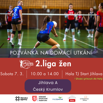 Lídr druholigové tabulky skupiny B volejbalistky z Jihlavy přivítají ve své domácí volejbalové tvrzi - v hale TJ Start v sobotu 7. 3. čtvrtý tým tabulky Český Krumlov.