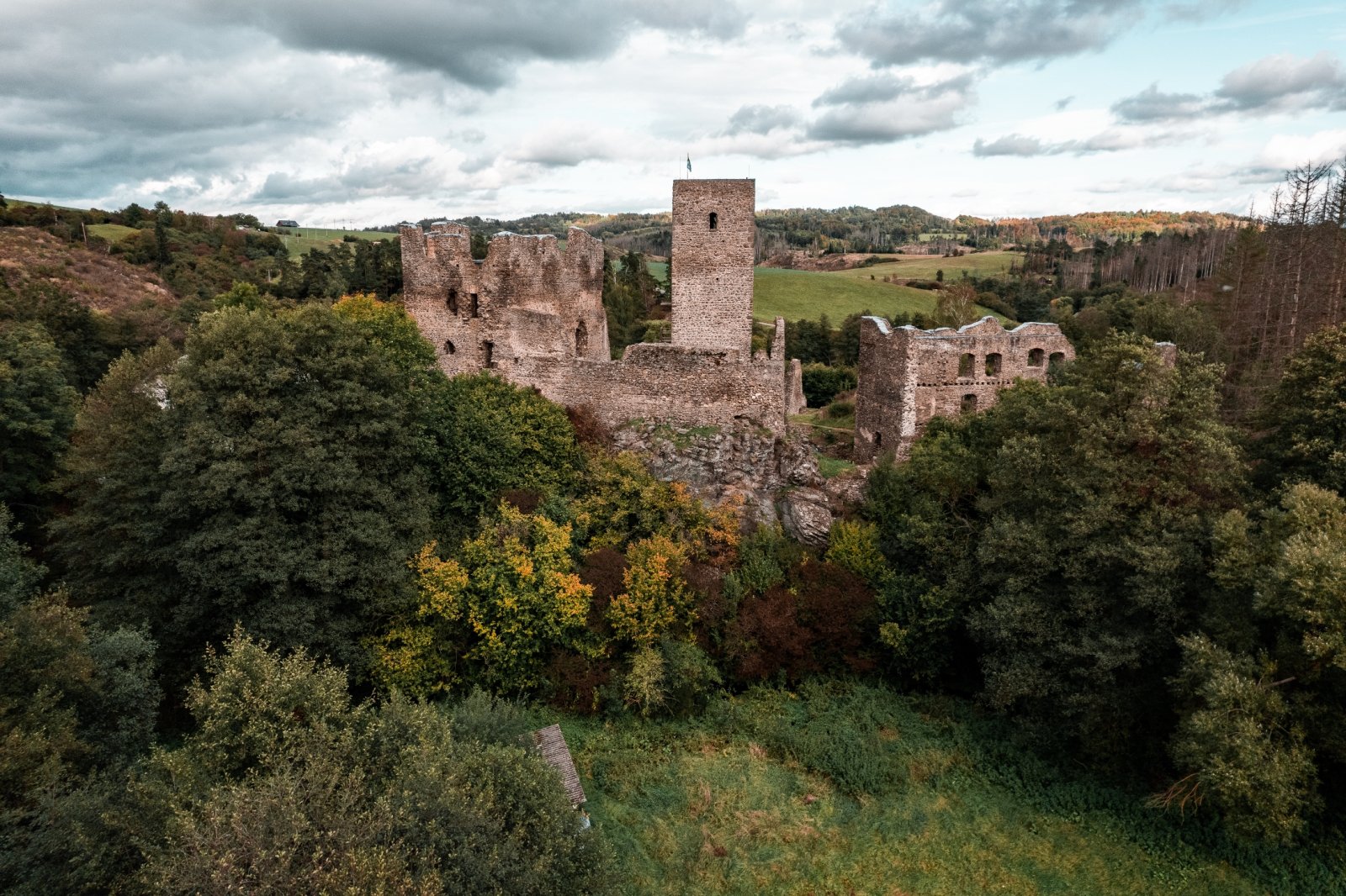 Rokštejn je zřícenina hradu, ležící na celkem neobvyklém místě. Netyčí se na vrcholu kopce nebo skály, kde byste jí pravděpodobně čekali, ale naopak sedí v údolí. Nás to trochu zmátlo, protože nebyla vidět ani když jsme byli 200 m od ní.