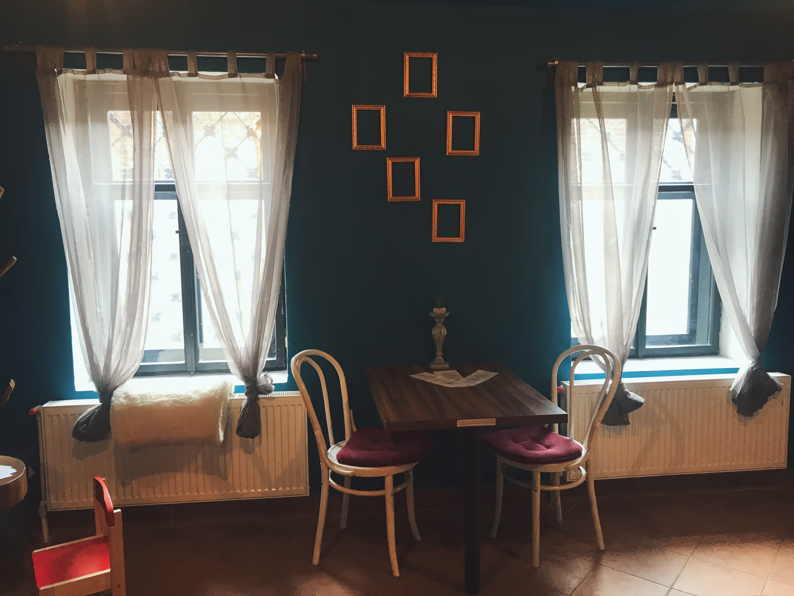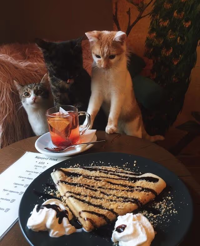 V nabídce slané a sladké občerstvení domácí výroby, především palačinky a vafle, obložené toasty. Vybírat můžete i z několika druhů zákusků a dortů.