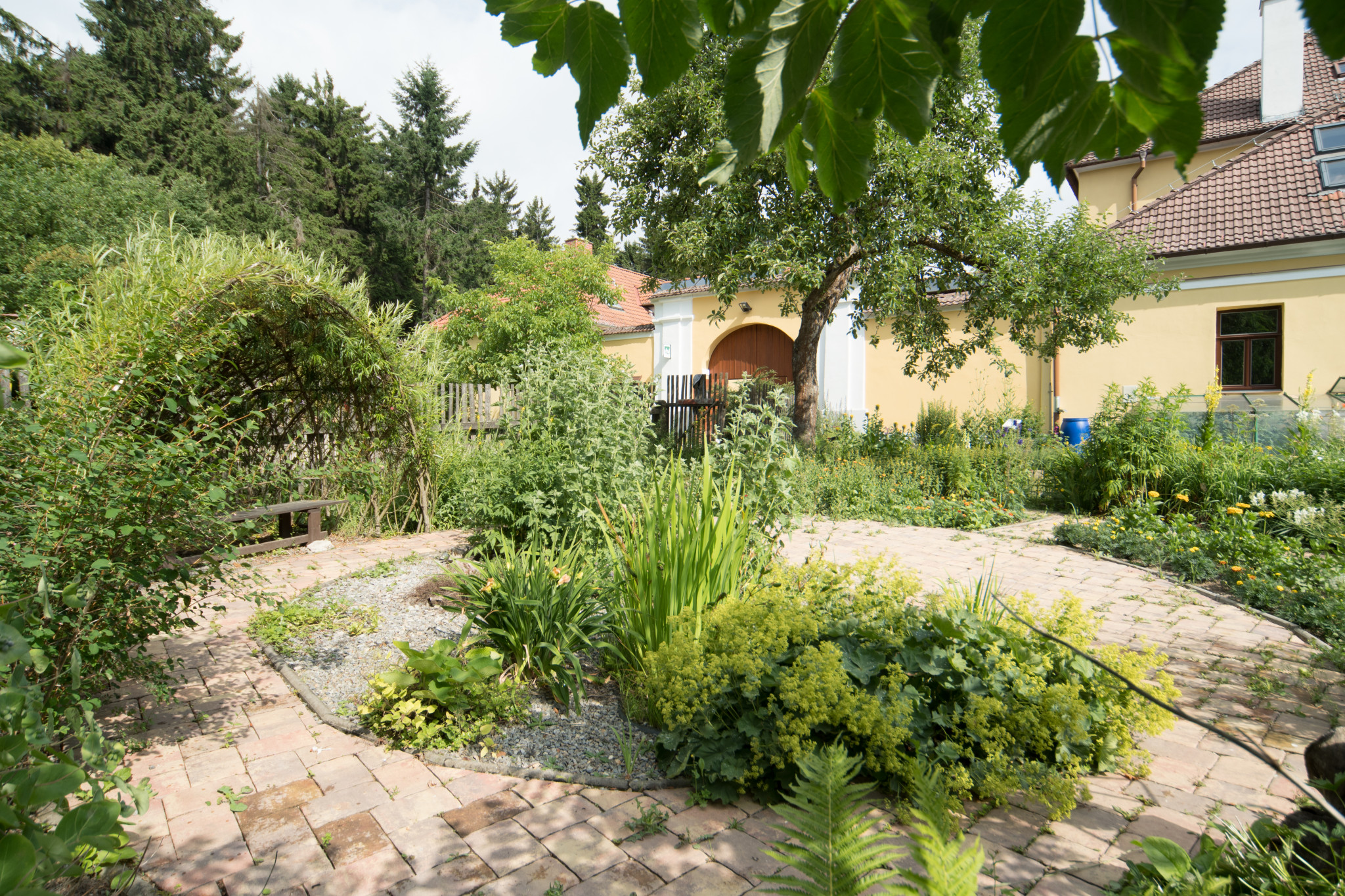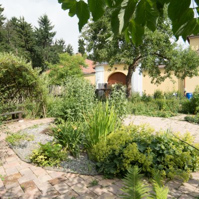 Ukázková přírodní zahrada v Chaloupkách je v péči stejnojmenného střediska ekologické výchovy, které se tvorbě a propagaci školních zahrad věnuje už dvacet let. V zahradě kromě pracovníků pracují také děti, které na Chaloupky přijedou na týdenní výukový program. Bylinky a zeleninu využívá i zdejší kuchyně, v zahradě spolu s dětmi loví hmyz, učí se tu, měří počasí a starají se o zvířata.