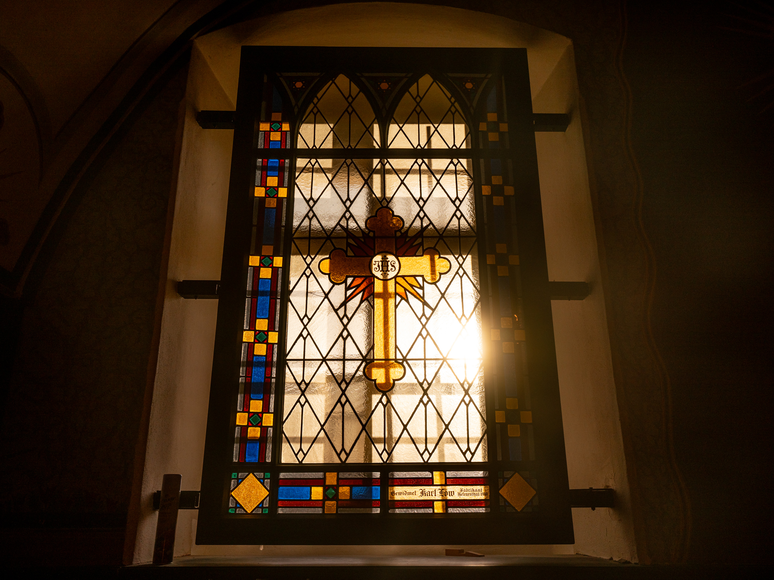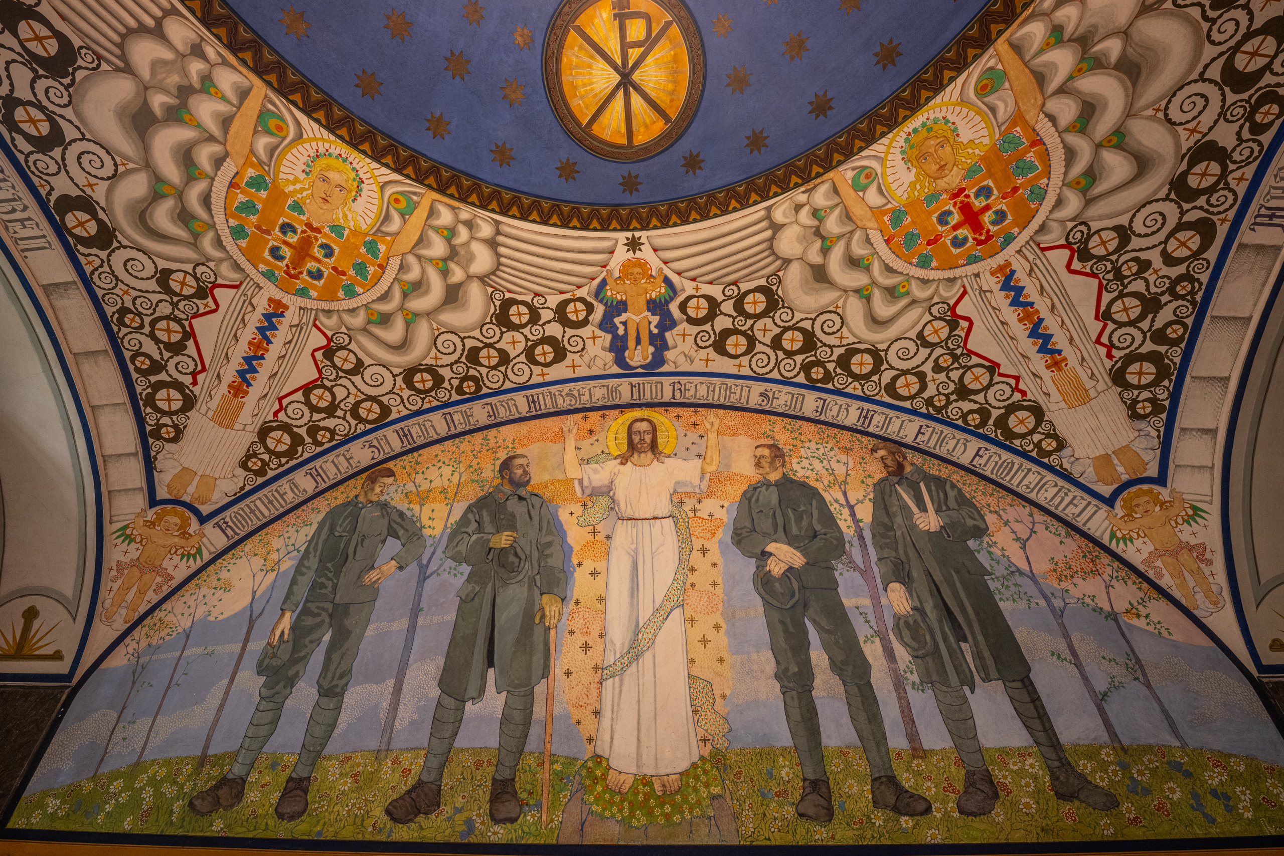 Kaple se nachází v nejstarší kamenné budově na předměstí Jihlavy postavené již roku 1782 z popudu císaře Josefa II. hejtmanem Maxem von Motschitz. Pro účely vojenské nemocnice. S kaplí v původních plánech počítáno nebylo. Vznikla až v roce 1916 v časech 1. světové války. Jedná se o unikátní malby kombinující církevní a vojenskou tématiku. Malby slohově kombinují pozdní vídeňskou secesi s prvky impresionismu. V současné budově je kaple odsvěcena a funguje jako reprezentativní zasedací místnost pro účely policejní školy. Kaple není běžně veřejnosti přístupná. Pouze jednou měsíčně se zde konají pravidelné komentované prohlídky organizované destinační společností Brána Jihlavy.