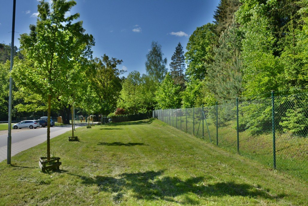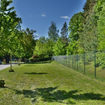 U louky je rozlehlá travnatá plocha vhodná pro piknik, relaxování či sportovní aktivity.
